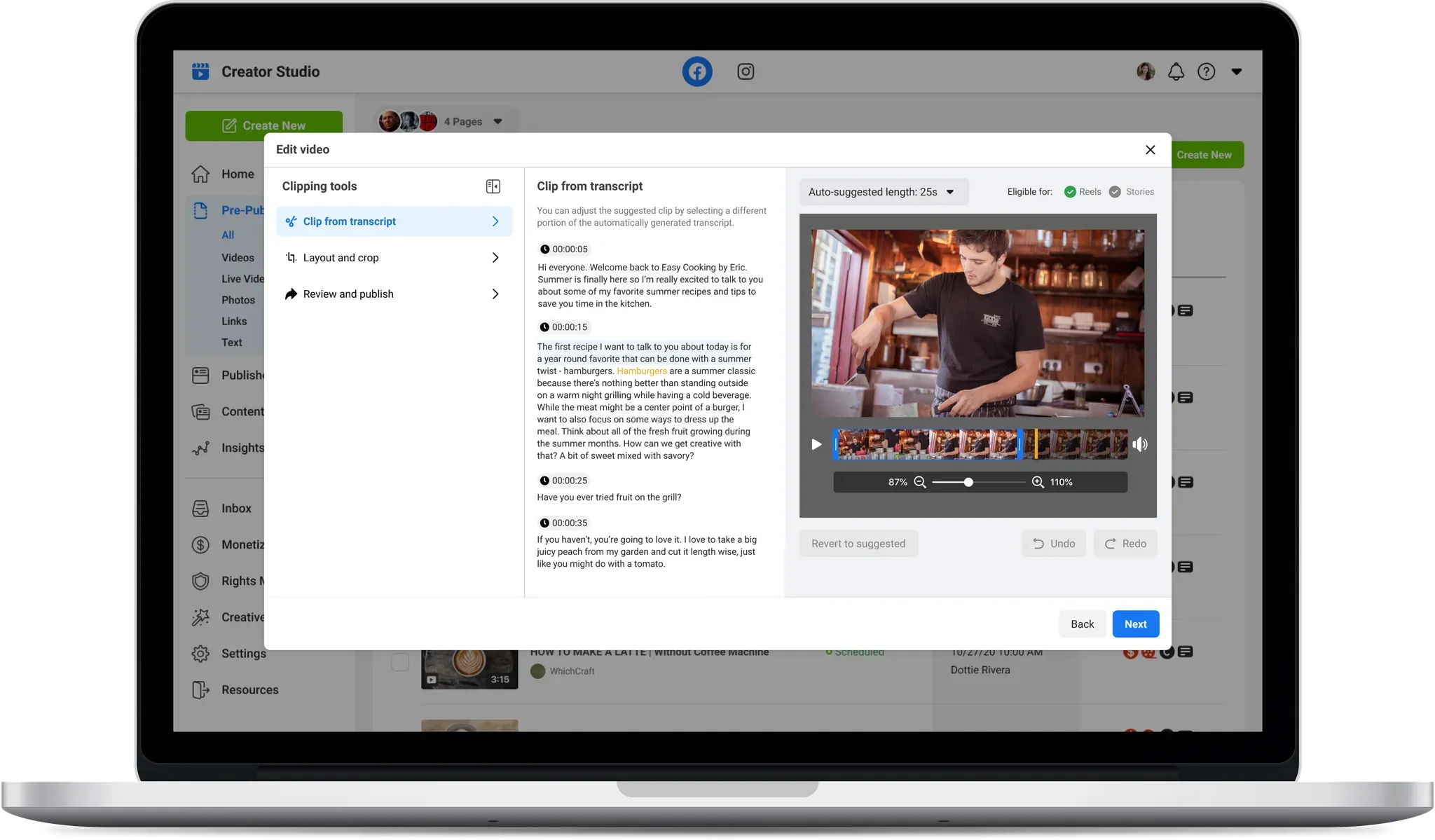 Creators will also now be able to create, edit and schedule their Facebook Reels from the desktop.