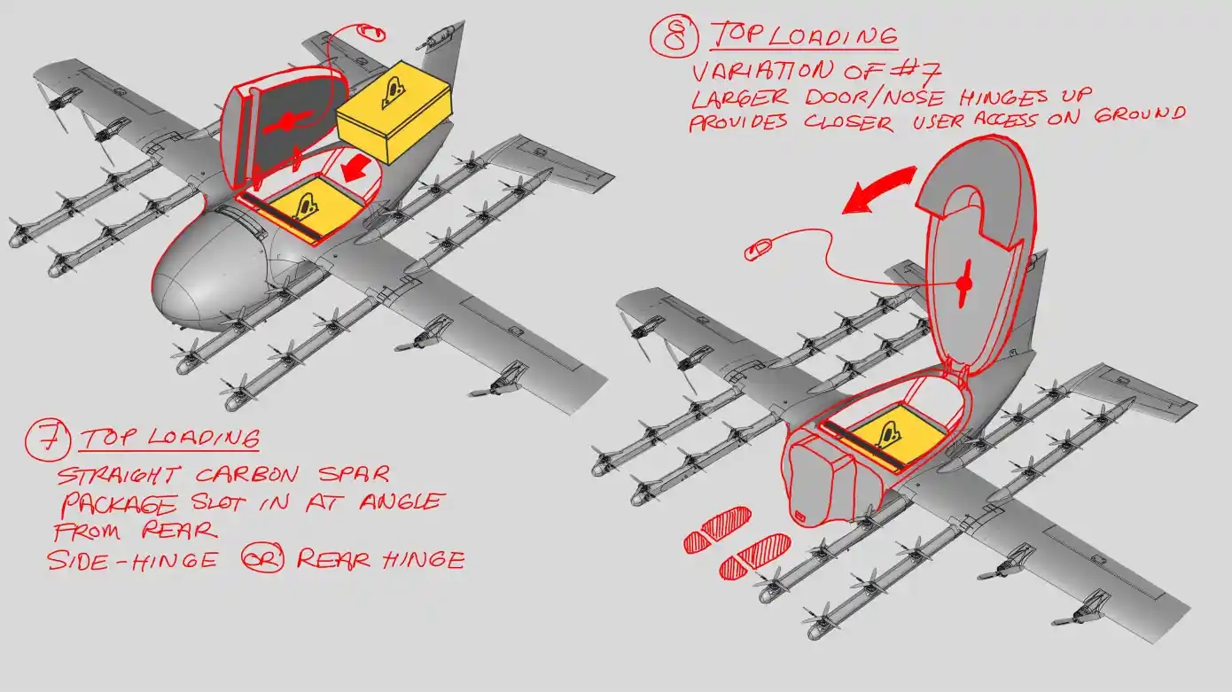 “The existing system that we built is a really strong foundation. The existing payload capacity carries about 2.5 pounds of stuff,” he told me. “The range is about six miles. That works really well for most of the on-demand delivery use cases that we’re focused on. While that main operational thread has been running, we’ve had R&D portions of the company looking at what other use cases there might be and what other vehicles can we develop in this same family of aircraft to be able to poke around different parts of the delivery ecosystem.”