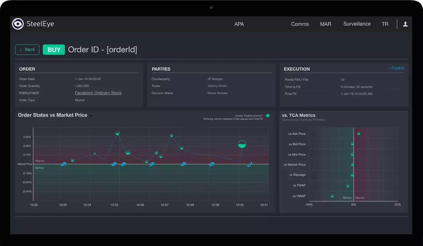 For example, the SteelEye Data Platform focuses on archiving and record-keeping, and is built to be tamper-proof through its WORM (write once, read many) foundation that ensures information such as orders, trades and associated communications cannot be modified. This includes built-in search functionality to easily retrieve data upon request by a regulator or auditor, and full “trade reconstruction” capabilities that can recreate the conditions around a specific trade or transaction.