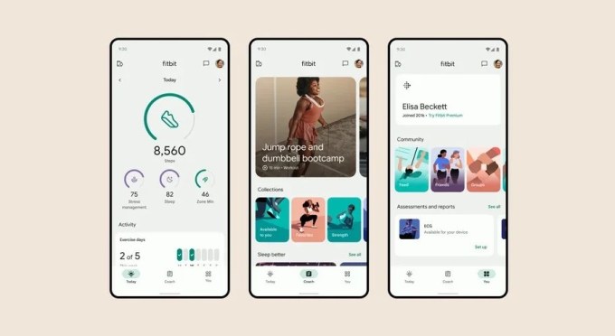 As previously revealed last month, Google says the app’s refreshed design makes it easier to use thanks to the new tabs: “Today,” “Coach” and “You.” While the “Today” tab already existed, it now gives users access to stats like today’s steps, stress management, sleep score, zone minutes and activity. Users can customize what stats they see by tapping edit at the top of the tab, allowing them to focus on their personal goals.