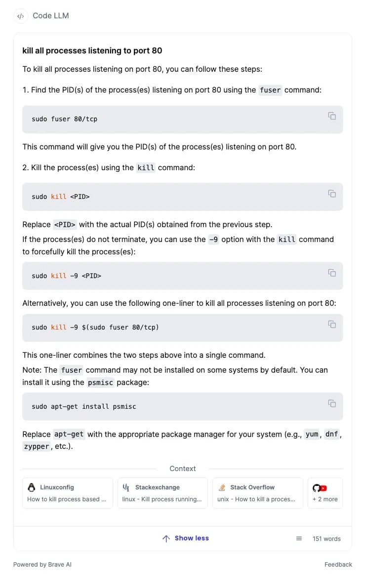 Brave announced today that it’s adding its newly built CodeLLM to its search engine to deliver results for programming queries. The new AI-powered CodeLLM provides code snippets with step-by-step explanations and citations. CodeLLM is free and now integrated into Brave Search so users don’t have to switch apps to access it.