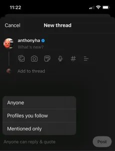 As of Saturday morning, the ability to limit quotes isn’t showing up when I log into Threads on my desktop web browser, but it is available in the Threads mobile app. Quote and reply controls appear to be bundled together in a single dropdown menu, where users can open the conversation to “Anyone,” or limit it to “Profiles you follow” or “Mentioned only.” These controls should make it harder to “dunk” on others, where users quote someone else’s post in order to make them look dumb.